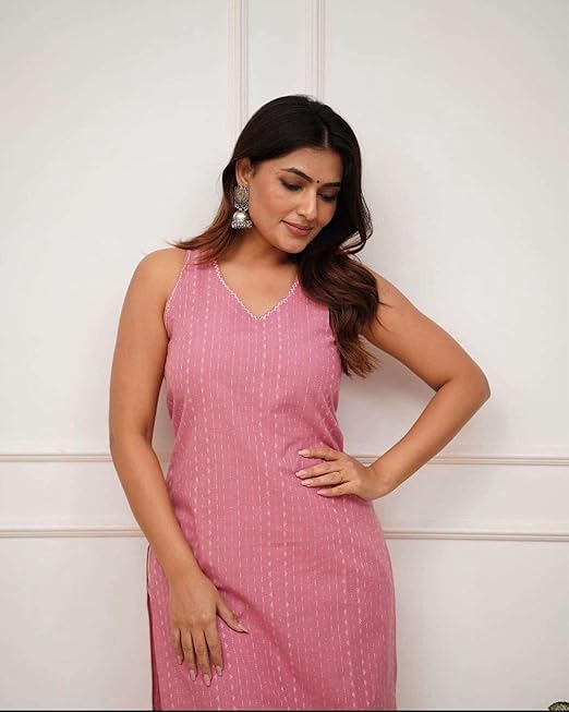 Women's Cotton Printed Sleeveless Straight Kurti with Pant Set